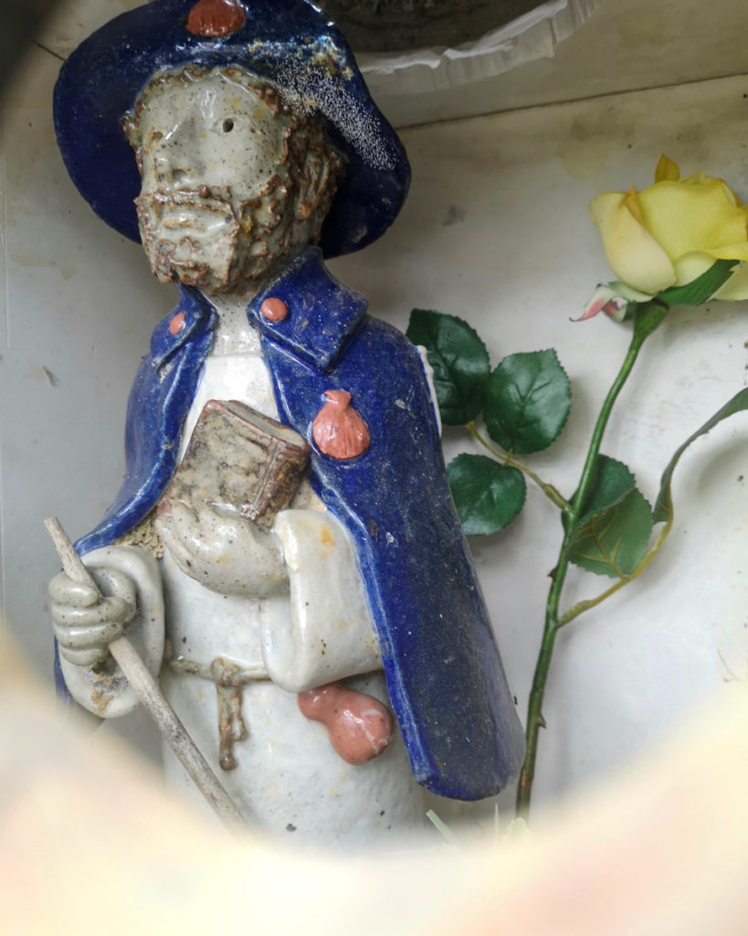 La mattina mi alzo presto e faccio colazione da solo, ma ho comunque il piacere di poter salutare Claire prima di partire. Lei sceglie di chiedere una benedizione per me davanti a una statua di un santo di nome Pedro di Alcantara. La figura di legno antico campeggia in un angolo del salotto, splendida e particolarmente.